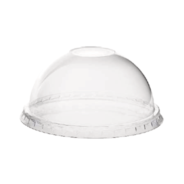 Cross-hatch dome lids for milkshake and smoothie cups are sturdy, lightweight, and provide a secure fit. The raised dome design allows extra space for toppings, while the cross-hatch opening accommodates straws for easy sipping. Made from food-safe and recyclable PET material, these lids combine sustainability with functionality. The clear construction enhances the presentation of beverages.